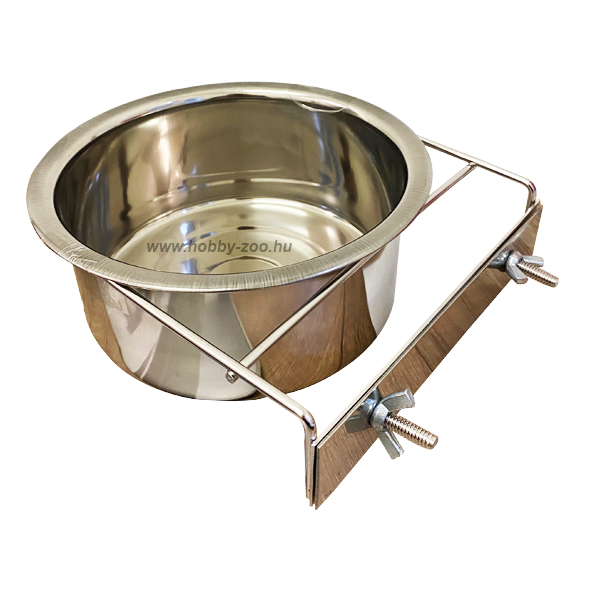 Kalitka vagy röpde oldalára felcsavarozható króm fém tál madaraknak és más kisállatoknak etetőnek vagy itatónak.
