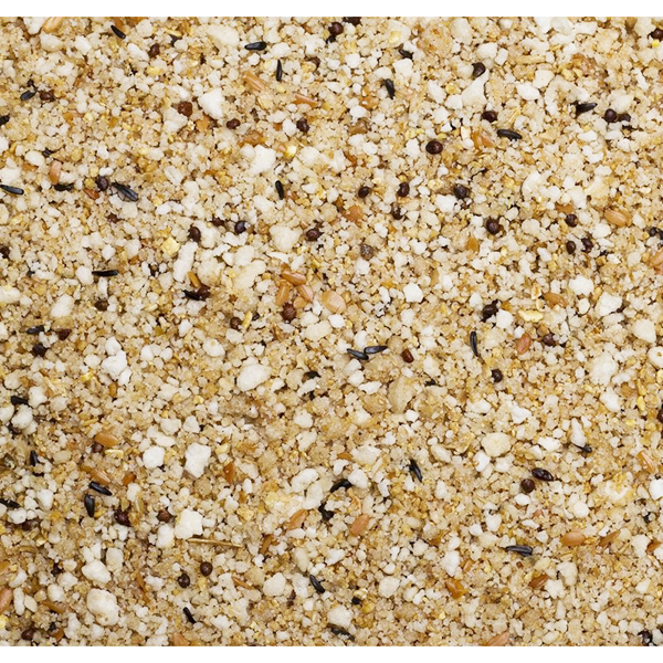 Ez a termék fiatal és felnőtt madarak számára készült. Tartalmazza az összes esszenciális tápanyagot (fehérjék, aminosavak, ásványi anyagok), amelyre a madaraknak szükségük lehet az év során. Nem tartalmaz színezőanyagokat, mivel a színeződés elkerülésére fejlesztették ki. Ideális fehér, halvány színezetű vagy mozaik kanárik számára. Nagyobb arányban tartalmaz A-vitamint, ugyanis ezt a recesszív fehér kanárik nehezen tudják előállítani. Az európai pintyek esetében azt javasoljuk, hogy dúsítsa a tojásos eleséget élő vagy fagyasztott rovarokkal (gyászbogárlárva, lisztkukac), mivel ezeknek a madaraknak nagyobb mennyiségű állati fehérjére van szükségük a fiókák felneveléséhez; különösen az első pár nap alatt. Az eleség már használatra kész tojásos eleség, amelynek fő alkotóeleme a friss tojás. A tojásos eleség durvább szemcseméretű és 100%-os természetes eredetű mézzel készül, állati zsírok hozzáadása nélkül. Az eleség további kiegészítő táplálék nélkül is adható a madaraknak, ami nagyban megkönnyíti a tenyésztők munkáját.