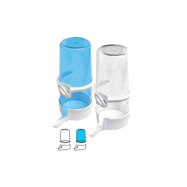 A ketrecen kívül elhelyezett műanyag itató mindig tiszta és friss vízzel látja el madarát.