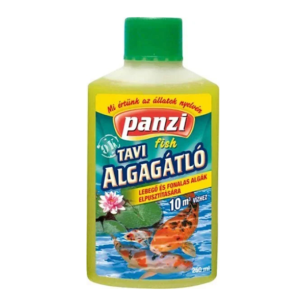 A Tavi algagátló oldat alkalmas a lebegő és fonalas zöldalgák elpusztítására, fejlődésük meggátlására. A készítmény a kovaalgák fejlődését nem gátolja. Alkalmazás: Megfelelő elkeveredés mellet adjuk az oldatot a tó vizéhez. Erős algásodás esetén a kezelést, 3-4 nap múlva ismételjük meg. Ha az algák elpusztultak, a továbbiakban csak akkor adjunk vegyszert ha az algásodás újra megindul. Az alkalmazás során a tó vizének megfelelő levegőztetéséről gondoskodjunk mert különösen meleg időjárás esetén a gyors algapusztulás oxigén hiányt okoz, mely a halak fulladásához vezethet. Frissen feltöltött tóba akkor kezdjük alkalmazni a szert, ha az algásodás megindul. Friss tiszta vízbe ne alkalmazzuk, mert a halak pusztulását okozza. Környezeti veszélyt okozó anyagokat is tartalmaz, de a kiürített edény vízzel való alapos kiöblítés után szelektív hulladéklerakóba helyezhető. Adagolás: 10 ml 400 liter vízhez, 1db 250 ml-es flakon 10 m3 vízhez. Csak kerti dísztavakban történő alkalmazásra! Gyermekek elől elzárandó!