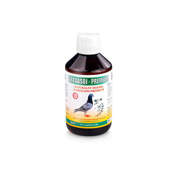OREGASOJ®-PREMIUM – alapja szójaolaj, ami egy energia aktivátor. Az Oreganum Vulgaris-ból származó növényi anyagoknak köszönhetően úgy hat, mint egy természetes antibiotikum, és véd a betegségektől. A versenygalambok jó kondícióban tartása könnyebbé válik e termék takarmányhoz történő adagolásával. Az oregánóból származó hatóanyag a termékünkben kiemelkedően a legjobb minőségű.