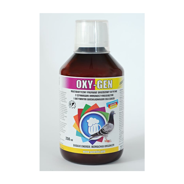 Az OXY-GEN egy galamboknak létrehozott modern, koncentrált élesztős készítmény, amely biológiailag hasznosítható és funkcionális tápanyagokon, enzimeken, aminosavakon, vitaminokon és ásványi anyagokon alapul, melyek rendkívüli aktivitása az élesztősejtekkel való természetes kapcsolatból fakad.