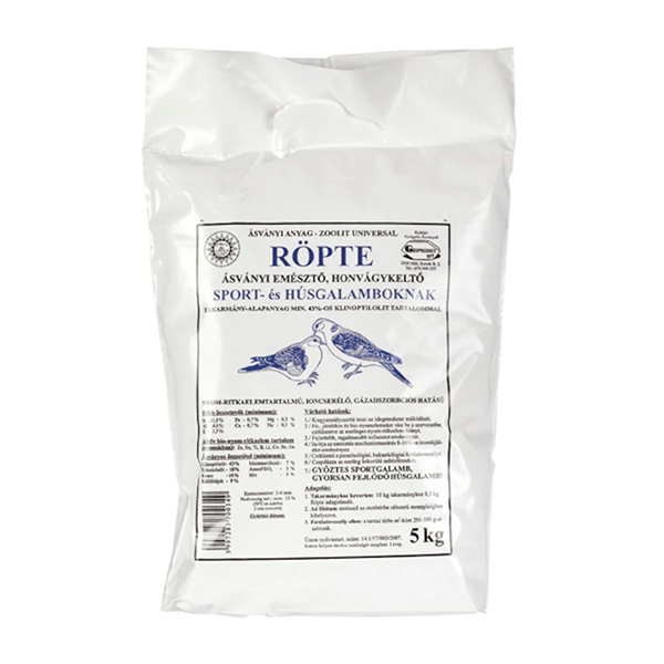 A Röpte egy takarmány-alapanyag sport- és húsgalamboknak. Nyomelem tartalmú, ioncserélő és szorpciós