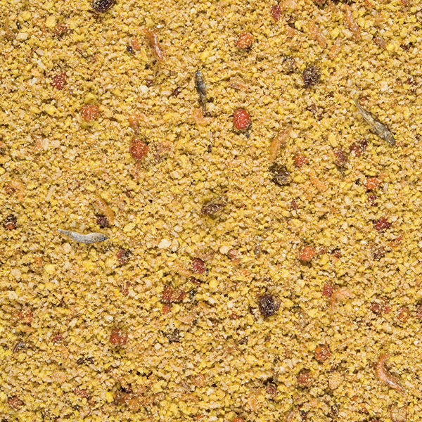 Összetevők: Tojás és Tojáspor(min. 30%), Növényi fehérjeszármazékok, Gabonaélék, Olajok és Zsírok, Gyümölcsök(min. 10%), Méz(min. 7.5%), Ásványi anyagok, Szárított rovarok(min. 5%), Szárított magvak, L-Lysine, DL-Methionin, FOS, MOS, Tengeri alga, Carnitine.