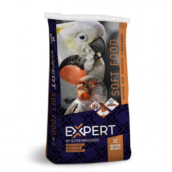 A Witte Molen Expert extra óriás papagáj lágyeleség egy durva szemcsés, diós, mandulás, mogyorós, valamint gyümölcsös lágyeleség. Erdei gyümölcsöket tartalmaz, melyeknek magas az antioxidáns tartalma és az eleséget olyan összetevők alkotják, mint a dióbél, mogyoró, mandula, borókabogyó, chili paprika stb., kiegészítve pékipari melléktermékekkel, mint a keksz és a kétszersült. Ajánljuk nagy és óriáspapagájok számára. Egész évben adható, de költési időszakban kifejezetten ajánlott!